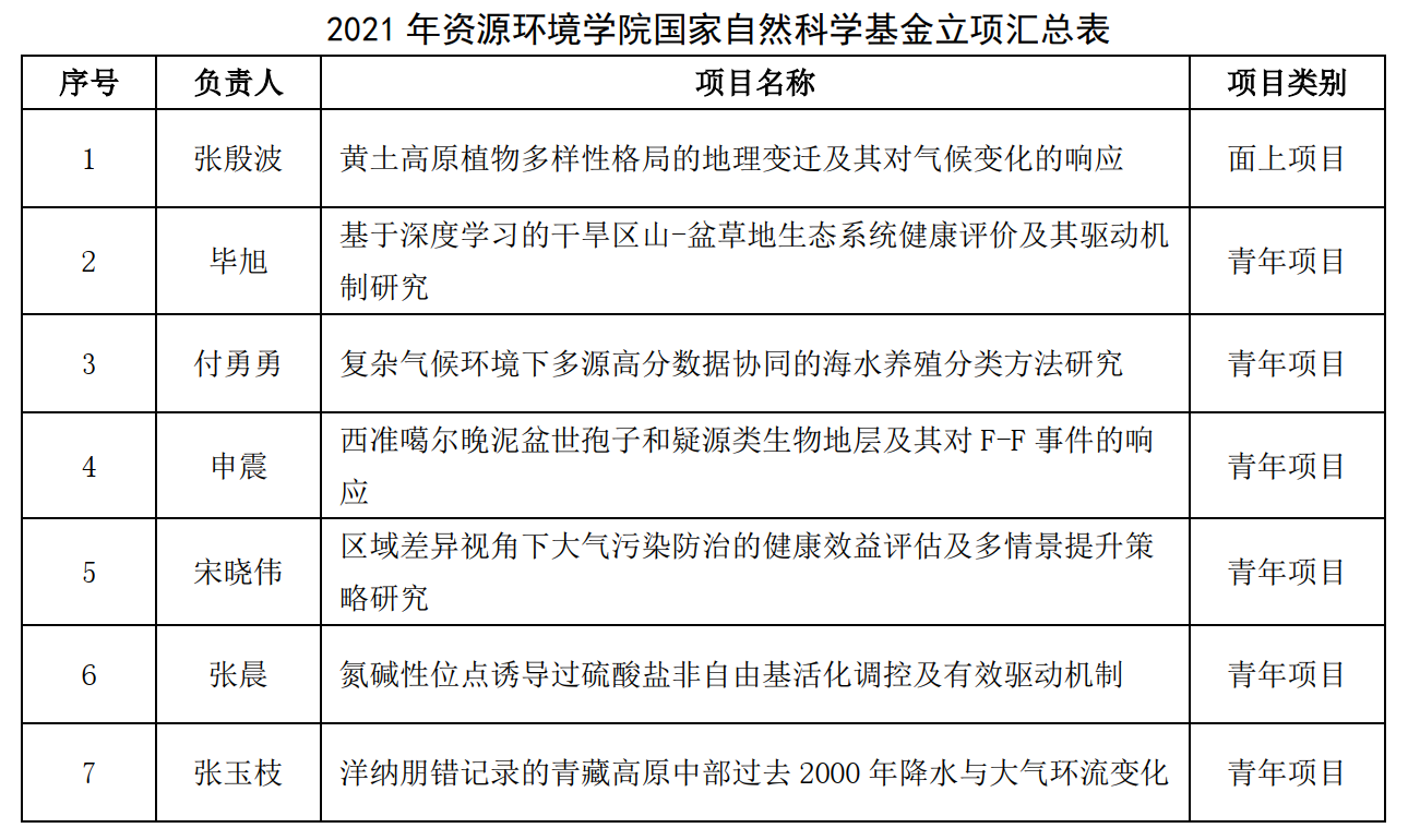 获批2021年国家自然科学基金共7项,排名全校第一,其中面上项目1项,青年科学基金项目6项,申报成功率达到35%(共申报20项),获批资助项目数量和申报成功率率均创历史新高。
