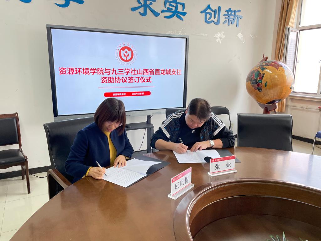 班凤梅、张业代表双方签署了“九三爱心助学金”资助协议。