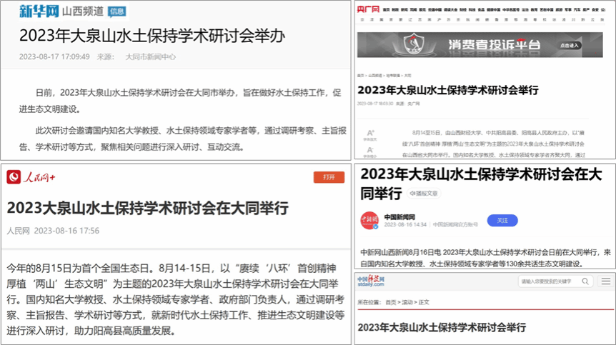本次会议的成功举办引起了社会各界强烈反响,人民网、新华网、央广网、中国科技网、中国新闻网、市场信息报、山西晚报、山西经济网、山西新闻网、大同网络广播电视台等五家国家级媒体,十余家省内媒体进行了报道和转载,显著提升了阳高县大泉山水土保持学术研讨会的影响力。本次研讨会为更多有志于水土保持和生态文明建设的学者搭建了学术交流平台,标志着山西财经大学与阳高县校地合作共赢迎来新的篇章,对提升我校地理学科影响力,助力学科建设起到积极的作用。